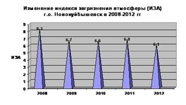 Суммарное влияние вредных примесей на чистоту воздушной среды города оценивается величиной индекса загрязнения атмосферы ИЗА, рассчитанного по пяти ингредиентам, вносящим наибольший вклад в загрязнение атмосферы. В 2012 году такими веществами в Новокуйбышевске стабильно являются формальдегид, бенз(а)пирен, диоксид азота, фенол и пыль (взвешенные вещества), характерные для выбросов нефтехимических, теплоэнергетических предприятий и автотранспорта.